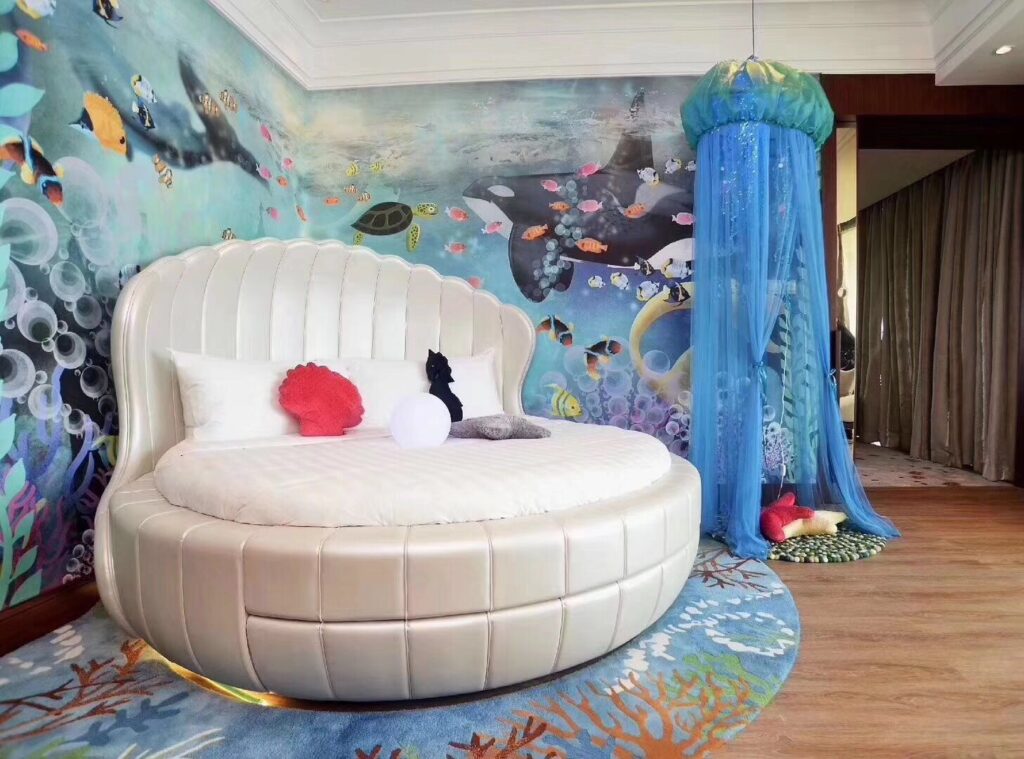 The Shangri-La Qinhuangdao family suites embody the concept of bringing the playground to your residence, complete with children-themed beds designed for play and sleep.